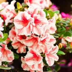 Bursting onto the scene as the latest star in the fabulous Encore® series, the Autumn Starburst® Encore® Azalea brings a bold, new, two-tone look, with gorgeous blooms of bright orange centers, surrounded by pure white edges. These revolutionary plants made ‘spring’ azaleas flowers for all seasons, with a bold spring display followed by some summer flowers, and a fabulous encore of many blooms in early fall – wow, what a breakthrough. Now azaleas can be a steady feature of your garden and shrub beds, blooming for months and adding color to beds, edging and containers too. If you are already familiar with the Encore azaleas, then this brand-new color belongs in your collection. If you are new, then it’s a great place to start, and discover what these plants can do for your garden. Just 3 feet tall, and a little more wide, it’s perfect for running along a path or drive, and with so much bloom you won’t need anything else for a season of great color.