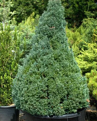 The Baby Blue Sawara Cypress appreciates fertile soil, and you can help that by blending rich organic materials like compost into the ground when preparing the planting spot. A spring mulch with more is very beneficial. Use evergreen fertilizer in spring and summer, especially while your tree is young. Once established, your tree will tolerate moderate periods of dryness, and in winter it is very unlikely any visiting deer will be interested in tasting it. Pests and diseases are rare, and with its naturally attractive conical form you don’t need to trim it either. It’s an easy plant that asks very little from you.