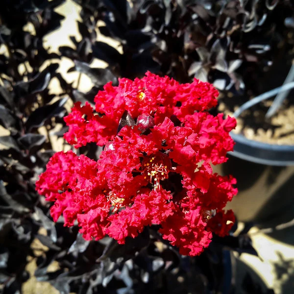 The Best Red™ Black Diamond® Crape Myrtle is the cutting edge of Crape Myrtle development, and it is a brilliant addition to the range of these plants currently available. Growing to just 12 feet tall, this plant is ideal for smaller gardens, for a screen, or for planting along a driveway. With its combination of brilliant red flowers all summer, set against red-black foliage, it really is a winner.