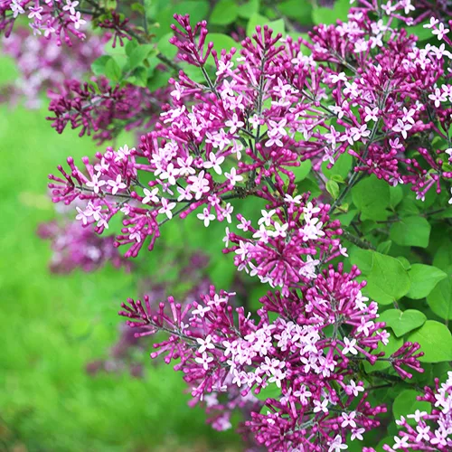 Lilac bushes are a vital part of the landscape in cooler zones, but many become large shrubs or small trees, and once they have flowered, they are not very attractive. Plant breeders got to work on this problem, and now we have lilac bushes that are more compact, with branches right to the ground. Not only do they form attractive rounded bushes that fill shrub beds well, but the best of them also re-bloom. After their spring showing blooms return over the summer, continuing to add brightness and color. They are ideal for smaller gardens, where each square foot must give as much as possible. If you love the traditional rich purples of the old lilacs, then we have just the plant – the Bloomerang® Dark Purple Lilac, with richly colored flowers that just keep on coming and coming.