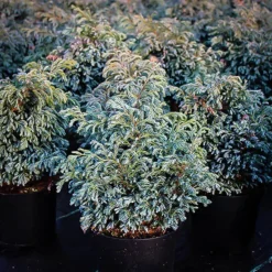The foliage color certainly makes the Boulevard Cypress a favorite, but it is also the soft touch of the foliage that has made it a winner. Unlike other bristly evergreens, this is one you will love to stroke. The ferny softness comes from a particular form of the original plant, the Sawara Cypress (Chamaecyparis pisifera). This Japanese tree grows 100 to 150 feet tall in the mountain forests of Japan. It is not a true cypress, so it is often also called ‘false cypress’. The wild tree is not grown in gardens, but many different forms have been collected.