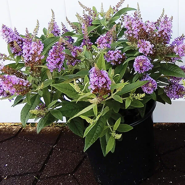 However we might define it, you will love this great new buddleja bush, which combines the small size of other new buddleja with the traditional fat blossoms of older garden favorites. Smothered in 5-inch long flower spikes that are fat and full, this plant is great in all the sunny spots of your garden, blooming continuously and profusely from early summer right into the fall. Once your spring blooms are over, let this easy plant step in and keep the color parade going. It thrives in heat, sunshine and drier soils (once established) and also looks wonderful in pots and planter boxes.