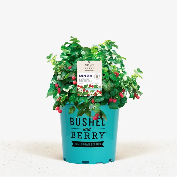 Love raspberries? Who doesn’t, with their appetizing bright red color and tangy, sweet and distinctive taste? Kids adore popping on straight in their mouth, cooks love what the colorful purée does to desserts, and with vanilla ice cream? Straight to heaven! But oh dear, when it comes to growing your own, there are those nasty thorns to deal with – ouch! And they grow tall, needing special support systems and an area of your garden to grow them – it ends up more like a farm than a garden. Fine if you want it, and we have some great standard raspberries available, but if all that doesn’t appeal, plant the amazing Raspberry Shortcake Raspberry instead. First of all, there are no thorns – so safe picking even for the youngest in your family. Then no staking. The profusion of canes produced are no more than 3 feet tall, arching gently into an attractive mound of leaves and fruit – and easy to pick. You can even grow it in a planter box right on the porch. The bright red fruits are just as large as normal raspberries, and – take our word for it – just as delicious too. Enjoy the unique pleasure of home-grown fruit, fully ripened on the bush, and still warm from the sun. Nothing beats it, so start growing and picking the easiest raspberry in the world.