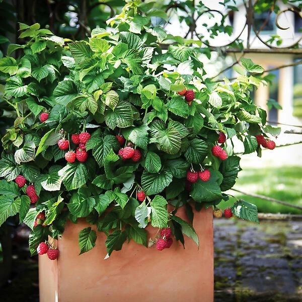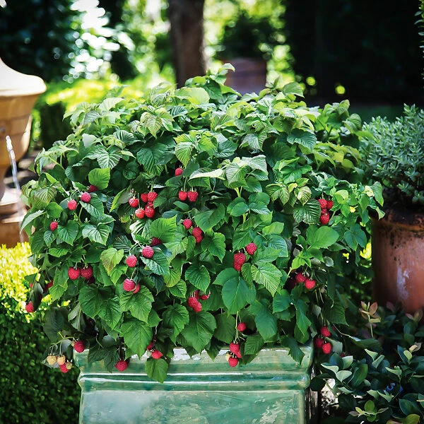 Because it needs no staking or support, and is compact, you can grow the Raspberry Shortcake Raspberry bush right among your flowers – it will look great. From zone 6 it can be grown in pots and planters too, which will stand outside all winter. In colder zones, containers will need to be protected from sever cold in winter.