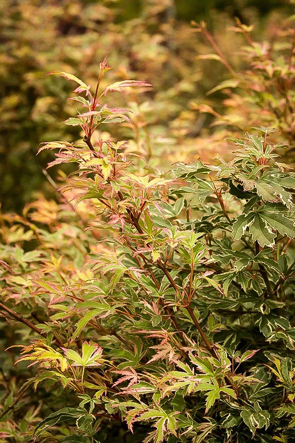 The Butterfly Japanese Maple is a small, upright tree with a shrubby form. It will stay small and compact for many years, eventually growing 7 to 12 feet tall, so this is an idea Japanese Maple for a small garden, or for growing in a large pot – a great way to enjoy these enchanting trees. It has a dense, bushy form and it is easily made into a more open, oriental-looking tree with a little thinning of the branches. Just remove a few twigs as the tree develops, and trim back any very long shoots, so that a natural, tree-form is created.