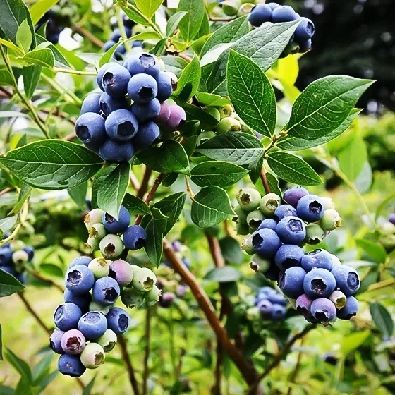 The berries of the Climax Blueberry are medium-sized, and a bright blue color, with a white powdery coating. They begin green and ripen to blue in June. When your bush is larger you may find you have too many berries to use fresh, as this variety ripens over a short period. Freeze the surplus and enjoy them out of season.