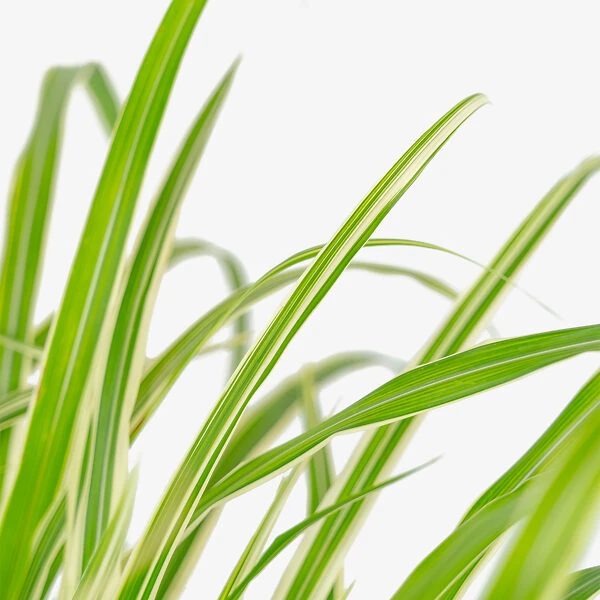 The Cosmopolitan Maiden Grass is a perennial grass that forms, in a single season once it is established, a tall column of swaying stems, with arching leaves, reaching 4 to 5 feet tall and wide, and up to 8 feet when flowering. It is self-supporting, and stand up to strong winds and rain without any trouble. The many stems grow in a dense clump, and the slender leaves arch out and hang down, creating a unique and wonderful garden form. Each leaf is up to one-inch wide, and bright green, with a slender pale-green vein down the center and a broad creamy-white stripe down each edge. The variegated foliage makes this plant bright and sparkling, and very different looking from most other maiden grasses, which normally have very thin, wiry leaves. It sprouts in spring, growing up from a perennial base, and soon reaches its maximum height.
