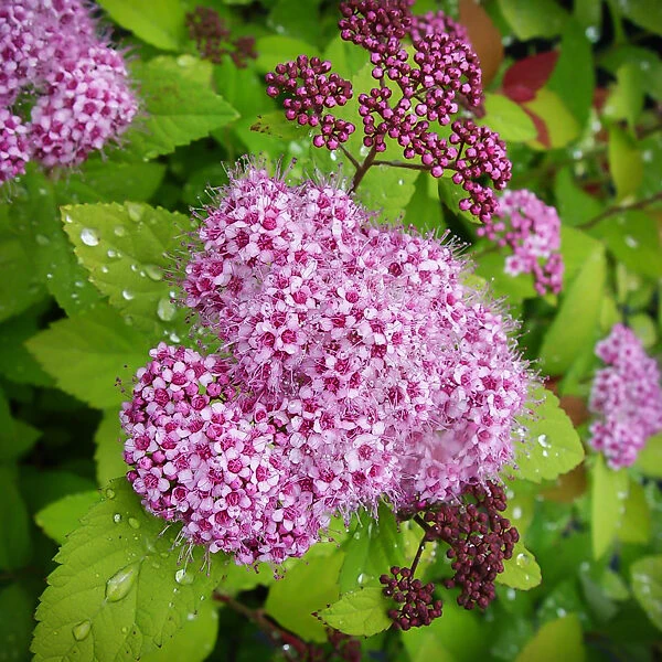 Flowering begins in late spring and continues throughout the summer, with the biggest show at the first blooming. The flower heads are bigger than you will see in any other Japanese spirea, growing a generous 3 inches across, packed with about 200 tiny bright-pink flowers. They really make this a real ‘flowering shrub’ and not just a ‘shrub with flowers’ – a great garden show for sure.