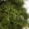 The foliage consists of many very tiny leaves that cling like scales to clusters of thin branches that are spread out in a flat spray. These sprays last several years, before eventually dropping in early summer, after the first flush of new growth for the year. The leaf color is exceptionally dark – a lovely rich, deep green – that holds its color well through winter, with little or no yellowing. The foliage, when crushed, has a beautiful aroma, resembling pineapple.