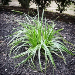 The Ice Dance Sedge grows in a wide range of light conditions. If the soil is moist it will grow in full sun, and otherwise it grows in partial to full shade very well. Plants in shade have whiter bands and look more striking – too much sun may make it look greener. It grows well in most garden soils, doing best in richer, acidic soils, so add organic material before planting. This plant enjoys moist and even wet soils, and it is not particularly drought tolerant. Do not plant in very dry and sandy soils.