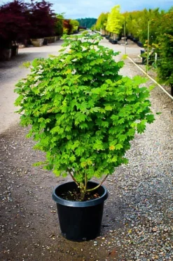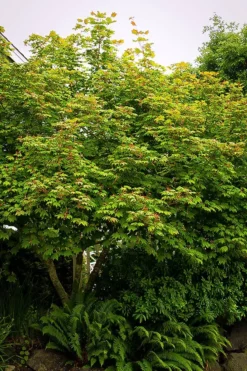The Japanese Vine Maple grows in all kinds of soil, from sandy soils and loams to heavy clays. It will grow in well-drained soil, but also in wetter soil. For the first season or two, keep it well-watered to maximize the growth rate, but once it is established it is resistant to all but severe drought conditions. This tree is very easy to grow, yet it looks like a rare, special specimen that must be difficult. It is far easier to grow than Japanese Maples, yet it has many of their characteristics and looks similar.