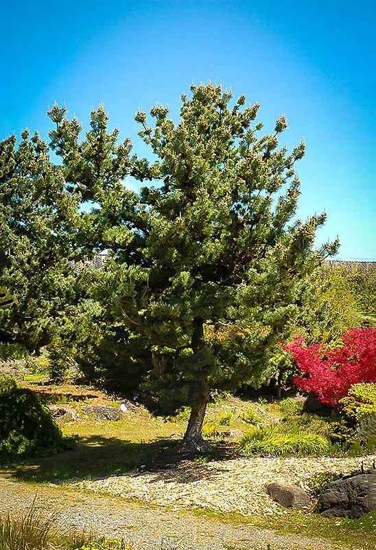 Pine trees are among the most beautiful of trees for any garden, and they have a distinctive character and ambience unlike any other evergreens. Their long needles are unique among plants, and instantly spell ‘pine’ to almost everyone. Their bark is often rugged and attractive, and they bring something very special to any garden. Casting only light shade, they do not darken a space the way other, denser evergreens do, so they can be used in smaller spaces, without creating a gloomy atmosphere.