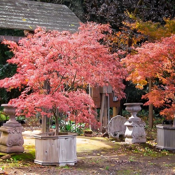 There are so many possibilities for growing the Kamagata Japanese Maple in a garden. Its miniature scale makes it ideal for courtyards and enclosed areas, or small gardens. Plant it beside a pathway in an open woodland garden, or by a door or entrance, to be enjoyed each time you come and go. This is an ideal tree for planters and containers, and it looks charming and graceful planted in an elegant pot. It is indispensable for any type of Asian-influenced planting, and of course, it is perfect for a bonsai specimen, needed very little elaborate pruning to become a perfect miniature jewel. It responds well to pruning, and it is easy to emphasize its tree-like form by removing some of the internal branches and twigs, so that you create the illusion of a full-sized forest tree very simply – the tree itself will do most of the work, which is part of what makes this variety so special.