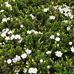 It grows into a small shrub 2 to 3 feet tall, and rounded, growing 2 to 3 feet across. This makes it ideal for a smaller garden, or for growing in pots, when it can be moved around the garden to enjoy its perfume everywhere. You can even make a low hedge with this plant. To keep it flowering, only prune in early spring, just when the weather begins to warm. Flowers are produced continuously from June to October, so throughout the ‘outdoor’ months you will have this beautiful plant in flower. Even when not flowering, Kleim’s Hardy Gardenia is beautiful, with its glossy, rich-green evergreen foliage giving structure and permanence to your shrub arrangements.