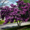 In cooler regions the copper beech and red-leaf crab apples are popular, but in warmer areas the Purple Leaf Plum stands out, bringing rich purple-red leaves that hold their color all summer long. The Krauter Vesuvius Purple Leaf Plum, which brings the bonus of a profusion of spring flowers, and has vigorous, richly-colored leaves, is a top-choice form of this popular tree, and one you should choose.