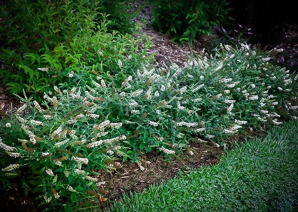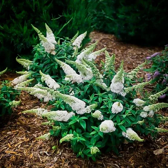 Summer and into fall are when we spent the most time in our gardens. Spring weather is often uncertain and wet, and it may be July before we are out much, enjoying our gardens. Yet many of the plants we grow in our gardens have finished blooming by then, making summer-blooming shrubs something we should focus on more. In the long summer evenings white blooms look best, glowing brightly when darker colors have faded into the deepening shadows, and bringing a cool look to a hot season. The perfect garden shrub would therefore flower all summer, with white blooms. For low-maintenance, and for those sunny, hot and dry spots in the garden, the perfect plant for that is the Lo & Behold® Ice Chip Butterfly Bush. Compact, long-blooming, and drought tolerant, this is a shrub your garden needs.