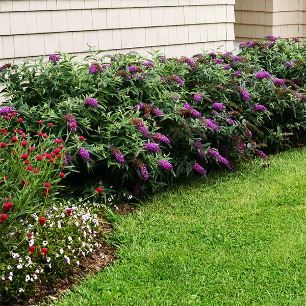 The Lo & BeholdĀ® Purple Haze Butterfly Bush is a deciduous shrub with dense twiggy branches that grow almost horizontally, making a bush that barely reaches 3 feet tall, but spread a full 4 feet wide. At that size it fits into any garden, and into smaller spaces. For larger areas itās easy ā just plant a group of 3 to cover an area 10 x 10 feet with color and interest all summer and fall. The long, tapering leaves are 4 inches in length, and colored a handsome gray-green tone that really looks great in the bright sunshine of summer. Although deciduous, in warmer zones it is often Christmas before the leaves fall, and if there is no frost blooming continues for a long time too. This plant is late to leaf out in spring, leaving room around it for spring bulbs and other early-flowering plants, before it sprouts again, and quickly fills in the space. It is densely branched, and every branch develops side shoots, each one ending in a big flower head, so a profusion of blooms is normal for this great shrub.