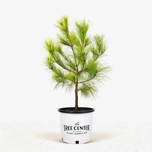 If you garden in any region where winter temperatures stay above minus 10 degrees, then you can grow this interesting native pine tree. It will grow rapidly, adding 2 feet or more per year, until it reaches perhaps 40 feet, and may eventually grow to approach 100 feet in height. For many years it will stay bushy and more compact, so it is ideal for screening. Eventually, if untrimmed, the lower branches will be lost, and it will become tall, with a high crown. The needles on this tree are 5 to 9 inches long, in clusters of 3. Older trees produce cones about 5 inches long. The bark on younger branches is an attractive reddish color, and as the trunk matures it becomes gray-brown, separated into large, corky plates, giving this tree an attractive, rugged look.