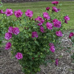 You will be amazed at just how tough and useful the Magenta Chiffon® Hardy Hibiscus is. It takes heat and humidity in its stride, and thrives out on a lawn as a stunning specimen. Use it behind shorter shrubs, fill an awkward corner, or make a spectacular informal flowering hedge that must be seen to be believed. For hedges and screens space plants 3 feet apart for a wall of blooms. In warmer zones it can also be grown outdoors all year round as a potted tree, although it won’t grow as large as it will in the open ground.