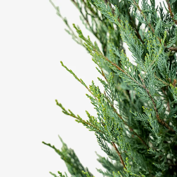 The blue-green needles form along the branches to create a full and dense display that lasts throughout the entire year. Unlike other needle-foliaged trees, the Rocky Mountain Juniper retains most of its needles, ensuring an unlittered base and surrounding area. The branches on the juniper form at the base and slope upwards as the tree matures, giving it a full and perky appearance. It is very similar in appearance to the Eastern Red Cedar and it may hybridize with it if there are examples grown close by. This is a non-flowering specimen that does not produce any cones or fruits. However, its thick foliage is a favorite refuge for many types of birds, as well as small animals like squirrels and chipmunks.