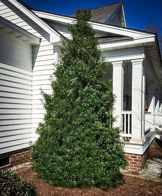 The Nasa Holly is a small, pyramidal tree that grows slowly, with an attractive, dense form. It may eventually become large, reaching 10 feet tall and up to 6 feet wide, but it is more likely to be about 4 or 5 feet tall and 3 feet wide. The evergreen leaves are a deep olive-green, and narrow ovals, between 1 and 3 inches long. In spring small clusters of greenish-white flowers will be seen on older bushes, and these develop into bunches of bright red berries, on stalks, by late fall. The berries persist into the winter months, and besides being very attractive, they are a valuable winter food for local birds. Since holly bushes are separate male and female trees, a male tree is needed for good berry production. Any male plant of the American holly or the Dahoon holly is perfect. It may be that there are already holly bushes in your neighborhood that will do the job, but if you see flowers but no fruit, plant a male tree nearby.Â