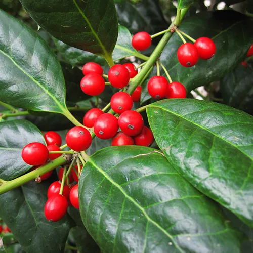 This reliable tree satisfies so many needs – it has beautiful, dense, dark-green foliage. It is also pest-free, rapid growing (but not in need of constant trimming), and shade-tolerant too; a rare feature in screening trees. It gives you all this, plus there is the added bonus of a crop of striking red berries to brighten the dark days of winter and decorate your house for the festive season.