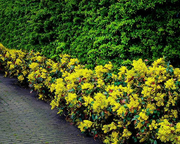 The Oregon Grape can be planted in all kinds of gardens and fits into everything from a garden of native plants to a formal garden of clipped hedges, plus everything in between. It is superb, covering the bare ground that develops beneath fir trees or cedar trees and even in the shade of evergreen hedges. It can also be used alone or if you have suitable soil, mixed with other shade-loving shrubs from Rhododendrons to Japanese Maples. The great thing about this plant is its tolerance of conditions that will defeat almost any other shrub, so if you have problem shade-areas of your garden, Oregon Grape is the answer.
