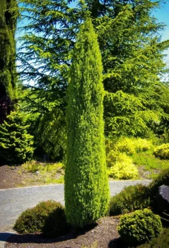 Tight, upright ‘exclamation mark’ accent plants give a great lift to your garden. They contrast with more ordinary, spreading plants, and help you create real art in the arrangement of your plants. Most grow tall, so for small beds and small spaces it can be hard to find a suitable choice. This is where the Pencil Point Juniper steps in. Growing just a few feet tall, and staying very narrow, this attractive evergreen is perfect to accent a small space. This plant may be small, but it is tough – so tough that even the weather in zone 2 doesn’t bother it. It grows well in poor, rocky soil too, and tolerates air-pollution as well. This tough little plant will take anything except heat and humidity, so if you garden in zone 7 or above, this is not the plant for you. In zones 7 to 9, consider instead the Skyrocket Juniper, which grows a little taller, but is almost as tight and narrow, with similar blue-green foliage.