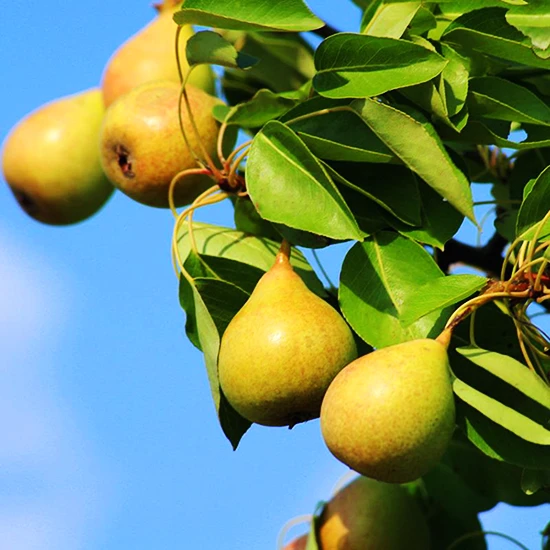 If you have tried to grow pears, and found it difficult, then we have something special for you. Heirloom trees have far more taste than modern pears, and for a unique taste from a tree that is very easy to grow, the Pineapple Pear can’t be beaten. The delicious tropical flavor, with overtones of tangy, sweet pineapple, is something very special that you only find in this variety, which is never sold in stores. That rich flavor is combined with the crunch of an Asian pear, and for eating like an apple, or cooking into delicious preserves and desserts, you will love this tree. When we tell you that it is also highly resistant to the deadly fire-blight disease, grows especially well in the South, and is self-pollinating, you can now see what an amazing tree this is. As well, if you already have a pear tree that never fruits well, the Pineapple Pear Tree will change all that, bringing bumper crops to any tree it grows near.