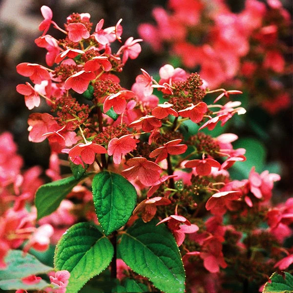 The panicle hydrangea, Hydrangea paniculata, is a shrub native to China and Japan, which can grow into a small tree as much as 20 feet tall, although it is usually smaller. In the 1870s the form we know as the PG Hydrangea was introduced from Japan to America. Since then that old favorite has been improved greatly, and in 1991 Rein Bulk, a grower in Boskoop, the Netherlands, looked at a batch of seedlings of panicle hydrangeas he had been growing and spotting something special. Much bushier than the others, early blooming, and with strong stems, this plant also had wonderful rich-pink fall coloring. He named it ‘Bulk’ and patented it in the US in 2006. It was registered as Quick Fire® by Spring Meadow Nursery, Inc. from Michigan and released as part of their popular and reliable Proven Winners® range.