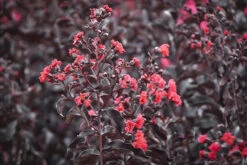 In smaller gardens particularly, getting the most from every plant is so important. For this it is very hard to beat the Red Hot™ Black Diamond® Crape Myrtle. The year begins when the new shoots emerge in spring. They begin a dusky purple color, and quickly become a rich burgundy red. This color lasts all summer, even in the hottest areas. In June the flowering begins. The flowers are carried at the ends of new branches, in cluster a full 4 inches long and 4 inches across.