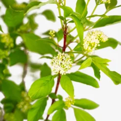 However, it is in winter that this plant really makes an impact; when the leaves fall the red twigs are revealed, making a spectacular display throughout the dormant season. Flowers are sometimes produced. They are small and white, in clusters 2 to 3 inches across. White berries are produced which can in some years make an attractive display on older plants.