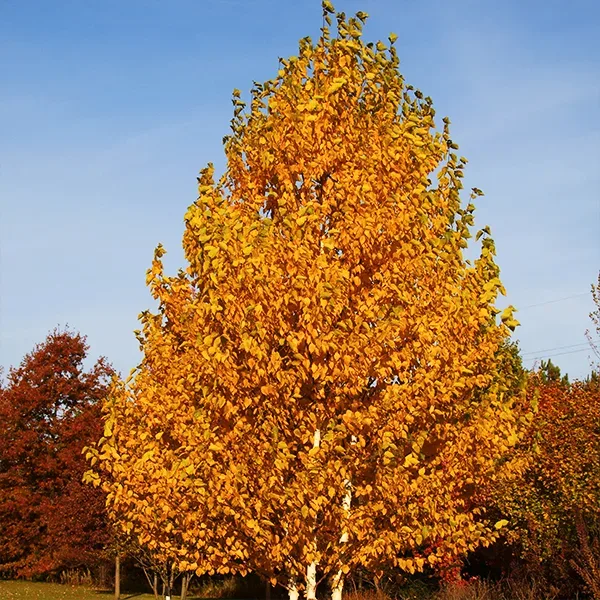 It used to be that moving into a new home meant planting a birch tree. Fast-growing, easy-care and attractive all year round, our streets were filled with these handsome trees. But then problems arrived, in the shape of two nasty pests – the birch borer, which would rapidly kill trees, and birch leaf-miner, which made them unsightly, turning their leaves to dry paper. Soon our birch trees faded away, and people stopped planting them, especially the white birch, whose beautiful bark in winter is as bright as the snow. Plant breeders are a stubborn bunch, though, and thanks to the tireless work of Thomas Pinney, Jr and his family, at their Evergreen Nursery in Wisconsin, we can start planting again. At the beginning of this century he introduced his Renaissance birch trees, and the one he called Renaissance Oasis is a real winner. It is highly resistant to both birch borer and leaf-miner, so forget about those nasty problems, and sleep easy. Very fast-growing and vigorous, within a few years your bare lot will have a full size tree (or several) that will beautify your yard even if you do nothing much more, or become the foundation will other, slower trees grow to establish your mature garden. This tree has a beautiful pyramidal shape, develops its bright white bark very early, and turns wonderful shades of orange-yellow in fall. A splendid tree that really does mark the rebirth of white birch in our gardens.