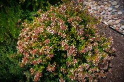 The Rose Creek Abelia is the ideal garden shrub for filling spaces in the front of beds, or the middle of smaller beds. It can be planted 3 feet apart to make a continuous edging for a bed, or to fill areas between taller shrubs or evergreens. Use it along a driveway or beside a path. Fill planter boxes with it, for easy bordering and privacy on a balcony or terrace. Wherever you need spaces filled with beautiful, ‘no trouble’ plants, this is your #1 choice. It is also great in a cottage garden, mixed with flowers and ornamental grasses – in fact, wherever you grow it you will love it.