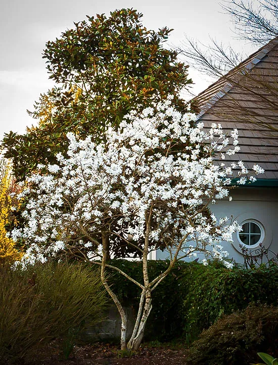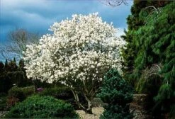 Planting a large shrub or tree brings a lot of benefits to your garden. It adds a vital third dimension to a space that, without it, can appear flat and uninteresting. It can provide shade, either for smaller, more delicate plants or for you to relax in on a hot summer afternoon. Shrubs and trees are an attractive but practical way to mark or even protect your property’s boundaries. And, of course, many of them can put on a spectacular display of flowers to bring the summer in with style. Among this group the Magnolias are long-term favorites and the Magnolia stellata cultivar Royal Star is one of the finest you’ll find anywhere.