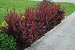 We recommend this barberry for hedges, because it has extremely dense growth and a good upright form. In just a few years you can build a great dense hedge up to 4 feet tall, and with the dense branches and sharp spines this will be a hedge that nothing will penetrate. Four-legged or two-legged uninvited ‘guests’ will never enter your yard through this hedge. Insurance companies recommend plants like barberry for growing beneath windows to deter intruders, and the Ruby Carousel Barberry is perfect for this job. Plant your bushes 2 feet apart for a solid hedge within a short time, or cluster them at that spacing beneath your windows. Add color and security at the same time. This bush is also great for colorful highlights among your shrubs. Plant singly in smaller beds, and in groups of 3 or 5 in larger ones. It gives great form and stable color you will love. It is a wonderful container plant too, in planter boxes, tubs or large pots. Grow them on your patio or terrace for bright color, and because it is drought resistant it won’t matter if you forget to water for a while.