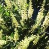 It varies in size from 3 to 20 feet tall, but it is usually a large shrub or small, multi-stemmed tree. The white flowers are small and star-shaped, but they are in clusters of up to 20 flowers, so they make a stunning display, covering the bare branches very early in the season. The oval or round leaves are one or two inches across, with a smooth, slightly glossy surface. The color in summer is a soft grey-green, making an attractive contrast with other plain green plants. In fall the Serviceberry makes a magnificent display, turning wonderful shades of orange and gold, with the veins standing out on the leaves – a real head-turner! The bark on the stems and twigs is smooth, light-gray and very attractive too.