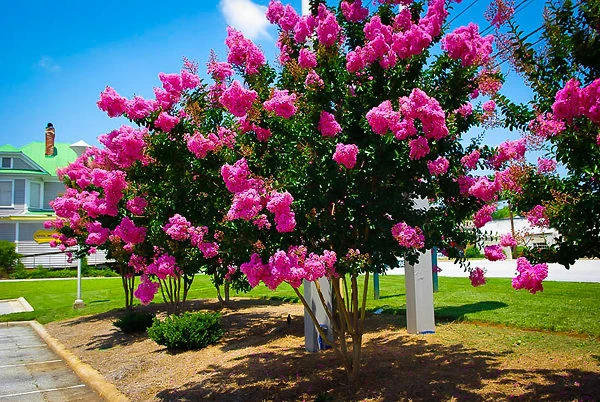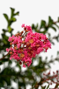 The great thing about Crape Myrtles is their ability to survive adverse conditions. Full sun at the height of a southern summer, hard soil, drought and general urban conditions are all overcome by these amazing plants. With modern breeding programs the problem seen on older varieties of white growth on the leaves in summer has been overcome. This disease, called powdery mildew, does not kill the plants but it makes them unsightly. If you have been discouraged from growing Crape Myrtles by seeing such plants, then don’t worry, your Sioux Crape Myrtle will shrug off disease and stay shiny and clean all summer long.