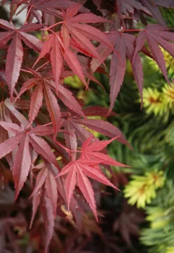 Skeeter’s Broom Japanese Maple makes a perfect accent specimen in a shrub bed, and it can be grown right at the front, where its foliage will be fully appreciated. It looks wonderful on a smaller lawn, alone or planted in groups. Use it in containers and planters in warmer zones, where it is easy to maintain a good water supply to the roots. This colorful plant is a great way to brighten boring green beds, and its fall color will look perfect on the edges of a wooded area.