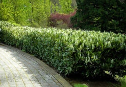 In most gardens however, its main value is in making hedges and screens, which it does with speed and ease. Because this selected variety of Cherry Laurel has much smaller leaves than common forms of the same plant, it makes a much neater, more compact hedge than the original form, while still growing vigorously to any size needed.