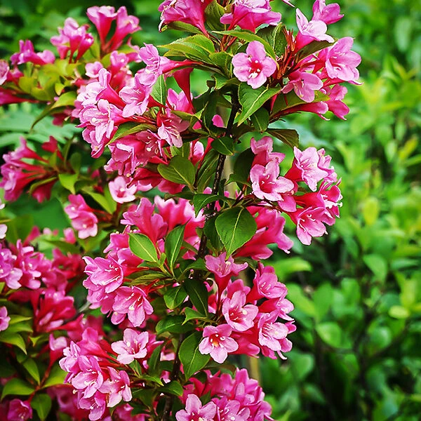 Weigela bushes are wonderful shrubs for late spring and early summer, covered in colorful blooms at that time. Sadly, after that, even the best older varieties only manage a few stray blooms later in the season, leaving you with a pretty plain, green bush to look at. That ‘bloom barrier’ took years to be broken through, but now Dutch plant breeders have done it, and created the brilliant Sonic Bloom® Red Weigela. The lipstick-red blooms are a stand-out, and they just keep on coming and coming. You will be happy, and so will your hummingbirds, who will now keep visiting all through summer. This great plant has been receiving terrific reviews from home gardeners, and it really does keep blooming. It’s perfect for any sunny spot in your garden, and lightens up summer easily, with a rounded shrub that needs very little attention, and grows vigorously. It can be disappointing, after the beauty of spring, to see so much green and so little bloom in your summer garden. Don’t let that happen to you, when shrubs like the Sonic Bloom® Red Weigela are the answer, giving flowers after most other shrubs have come to an end.