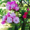 Flowers are produced almost continuously, except perhaps in the middle of winter, so you will usually have blooms to enjoy, year round. The flowers are distinctive, and easily recognized as different from all the other ‘jasmine’ plants. Instead of the usual 5 petals, there are 9 to 11 pure-white petals, spreading outwards in a star pattern. The buds too are star-like – or even star-fish like – when they first develop, before the fat, pink flower bud itself shows. That large pink bud opens into a wonderful white bloom, usually about 2 inches across, but sometimes as much as 3 inches wide – much bigger than other jasmines. The back of the petals remain purplish-pink. Each bloom releases the classic sweet, tropical jasmine scent, and since it blooms continuously you will always have that scent around, not just in spring.