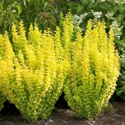 Tough plants with brightly colored foliage are the way to go when you want a great garden, but don’t want to be trapped gardening. Instead of relying on a few weeks of blooms, use plants that are bright and colorful month after month. Barberries are one of the toughest shrubs you can plant, and they come in an amazing array of leaf colors, from dark purples to glowing yellows. Bright, sunny yellow will always give your garden a big lift, so add it with the Sunjoy Gold Pillar® Barberry, which makes a brilliant column of gold, never scorching in summer, and never turning green. It goes out with a bang in fall, turning brilliant orange-red. Branching freely from the base, with upright stems, it forms a tight pillar that is excellent as a specimen, or for making into low hedges.