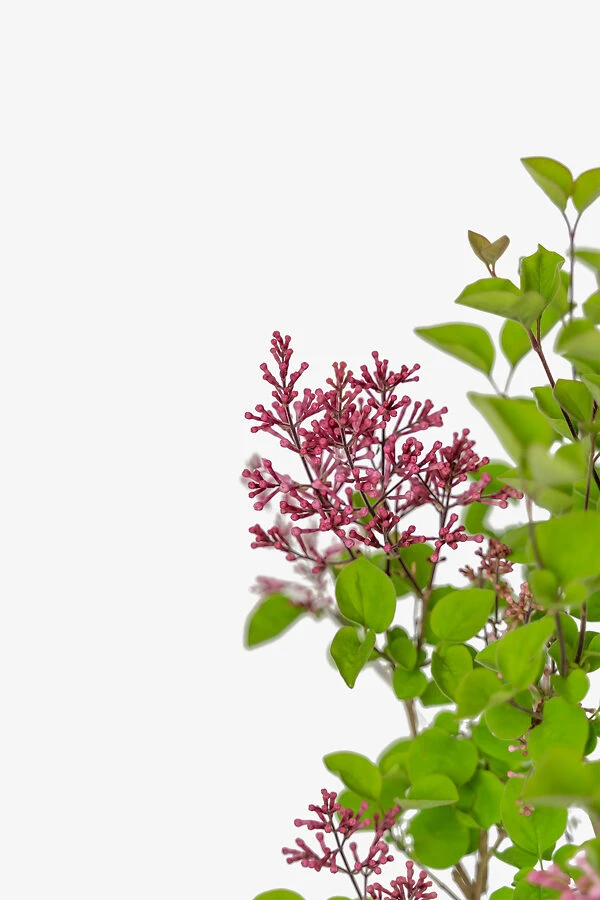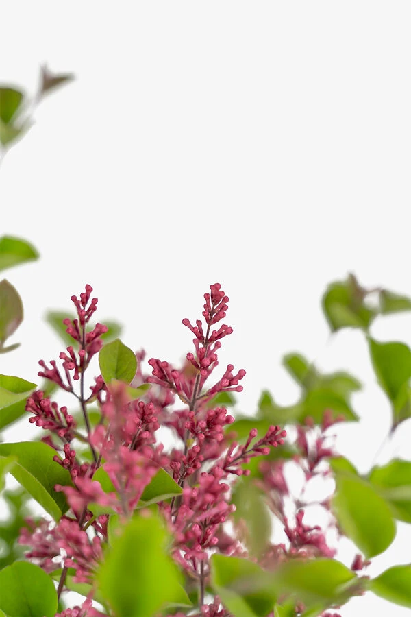 The Tinkerbelle® Lilac naturally has a dense, twiggy structure, and needs only minimal pruning. The leaves are smaller than in common lilac trees, being 1½ to 2½ inches long, and about 1½ inches wide, but they are of a similar shape and texture. The flowers are carried at the ends of the branches, and they are in pointed clusters called panicles. These are 3 to 5 inches long, and there is a profusion of them, covering all the bush.