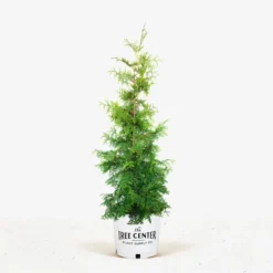 In 2004, Plantation Spring Nursery, Suffolk, Virginia, planted a batch of young plants of Thuja Green Giant, to grow into larger specimens. In 2007 Benjamin Frank Case, Jr., was working with these plants when he spotted something different. One plant was smaller, densely clothed in branches right to the ground, and with the feathery young stems already described. He realized it was a chance mutation, and he took the plant aside, propagated and tested it. In 2012, when he was satisfied it would keep its unique character, he named it ‘BFC68’. He was granted a patent on it in 2016, and here at the Tree Center we are proud to be among the first nurseries offering this plant. The reviews from happy growers are remarkable, and this plant is being snapped up by eager gardeners looking for a smaller, denser and more delicate version of Thuja Green Giant. Order now, while we still have stock – you won’t be disappointed.