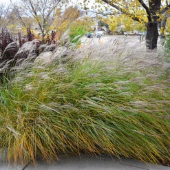 Maiden grass is without doubt one of the most outstanding and useful of all the ornamental grasses. It isn’t invasive, but stays as a dense clump, and the graceful arching leaves give a unique and airy look to your garden. The elegant feathery flower plumes come late in the season, making a spectacular fall highlight, and they last well through winter too. Easy to grow, everyone recommends it as essential in every modern garden. There is just one problem – a ‘big’ one – and that is the size. Plants can be 6 or even 8 feet tall in bloom, and will overpower the scale of plants around it, especially in a smaller garden. As always, though, Mother Nature has given us an answer. In a few selected parts of Japan a natural dwarf form grows, known in gardens as the Yaku Jima Maiden Grass. The leaves are extra slender to give a fine texture in proportion to the smaller size, and the beautiful white flower plumes rise elegantly above the foliage without looming over our heads. No matter if you are new to ornamental grasses, or an experienced grower, this is a ‘must have’ that you must have in your garden.