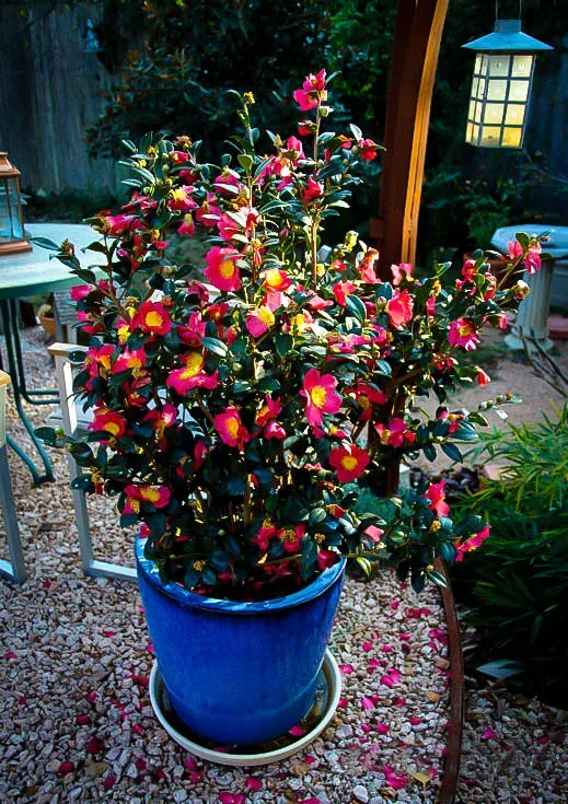 The Yuletide Camellia grows from zone 7 into zone 10, so in all the warmer parts of the country it can be grown right in the garden. In cooler areas it grows well as a porch plant and as it will tolerate quite a bit of frost, if you have a slightly protected place during the coldest periods you can grow this plant almost anywhere in the country. Even small plants will be covered in blooms, so it is an ideal container plant.